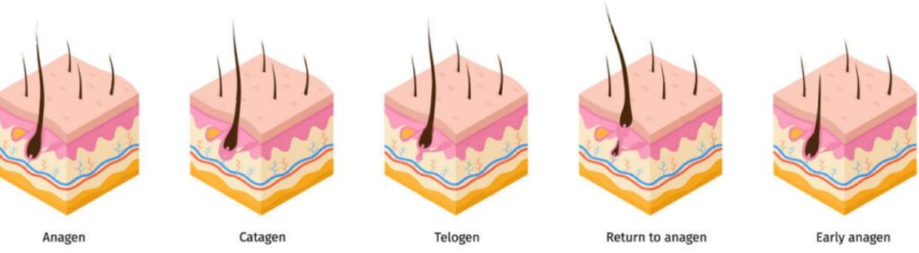 However, each hair follicle undergoes a six to eight-week regression phase called the catagen phase, followed by a dormant period known as the telogen phase.